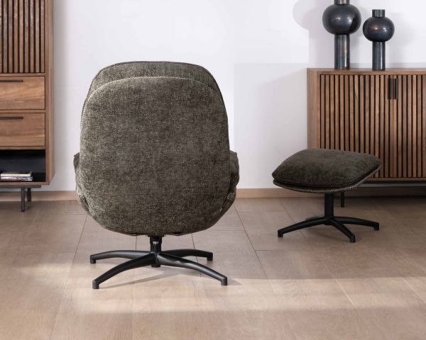 Fauteuil BRANSON pivotant avec repose-pieds kaki