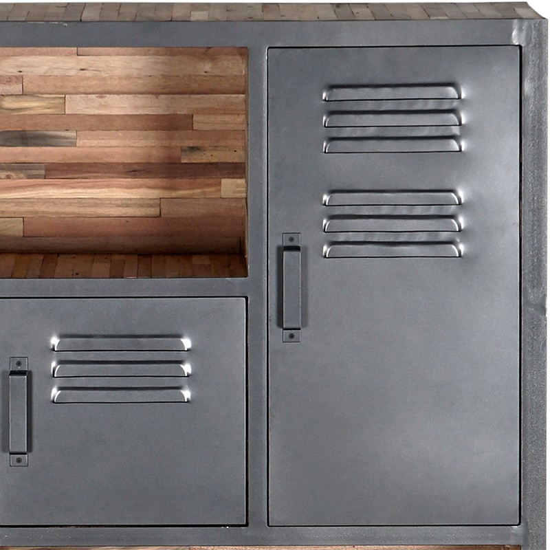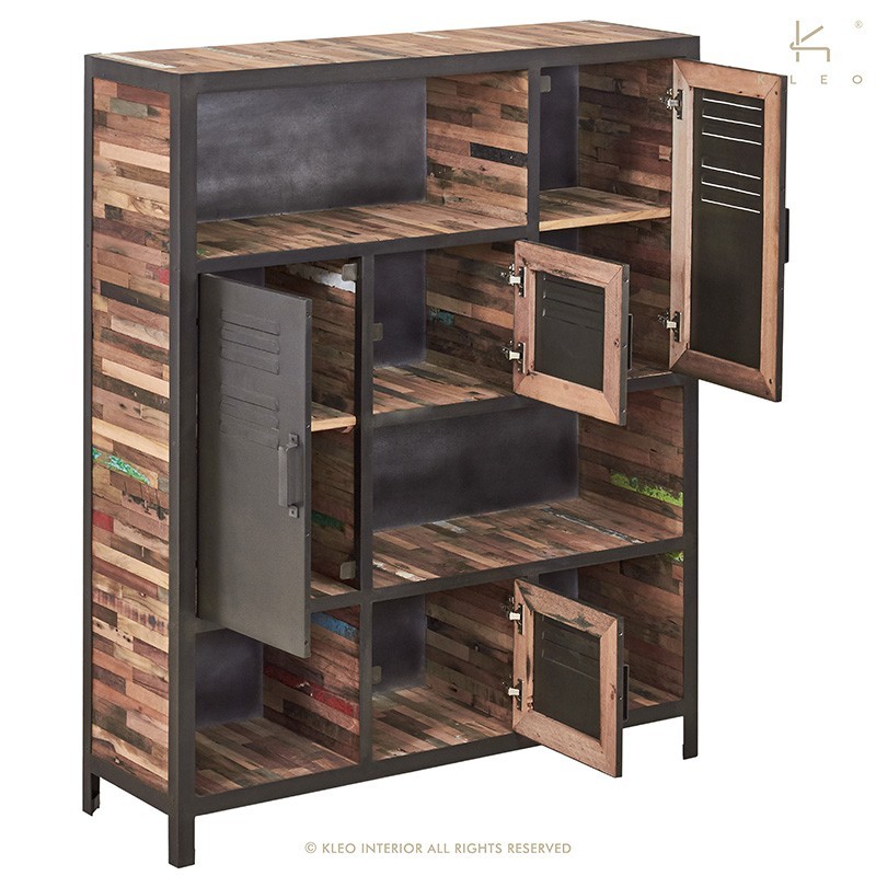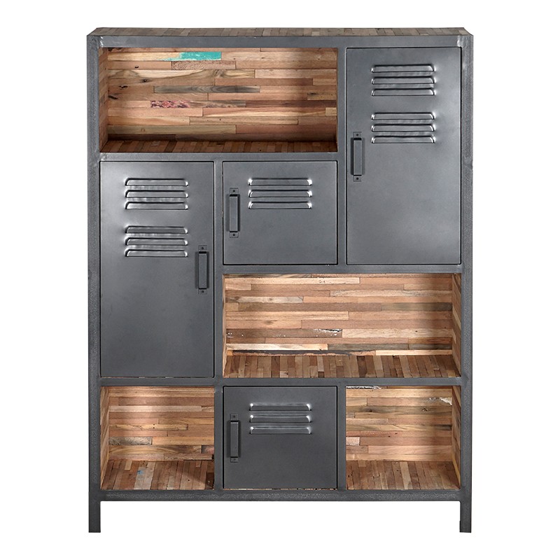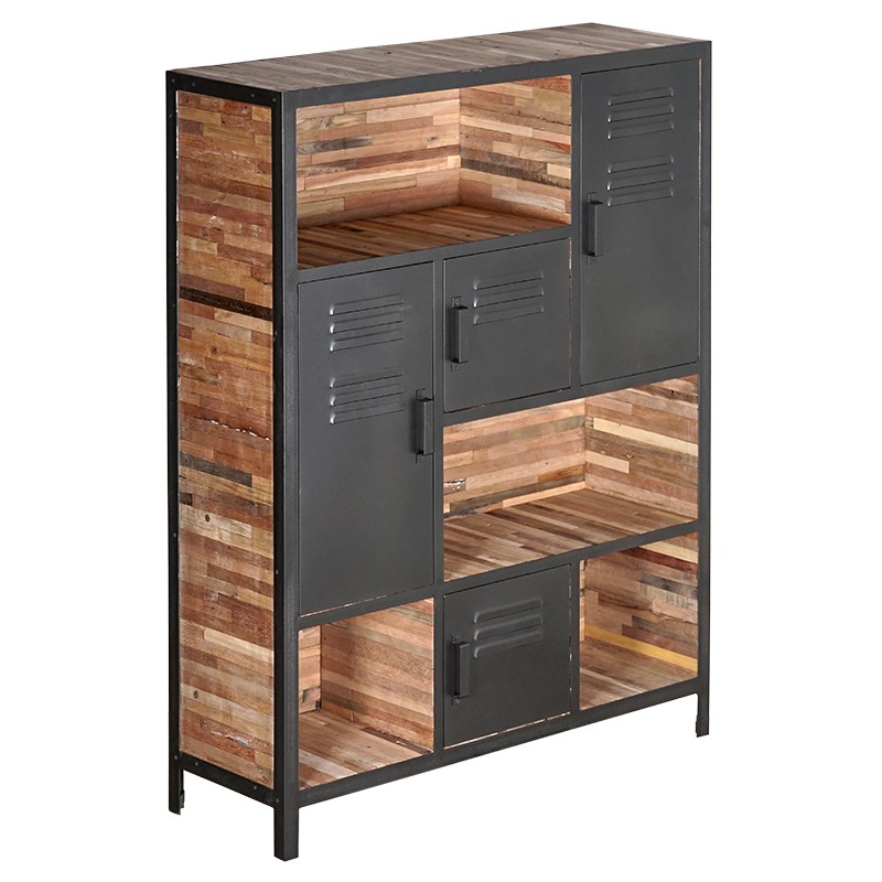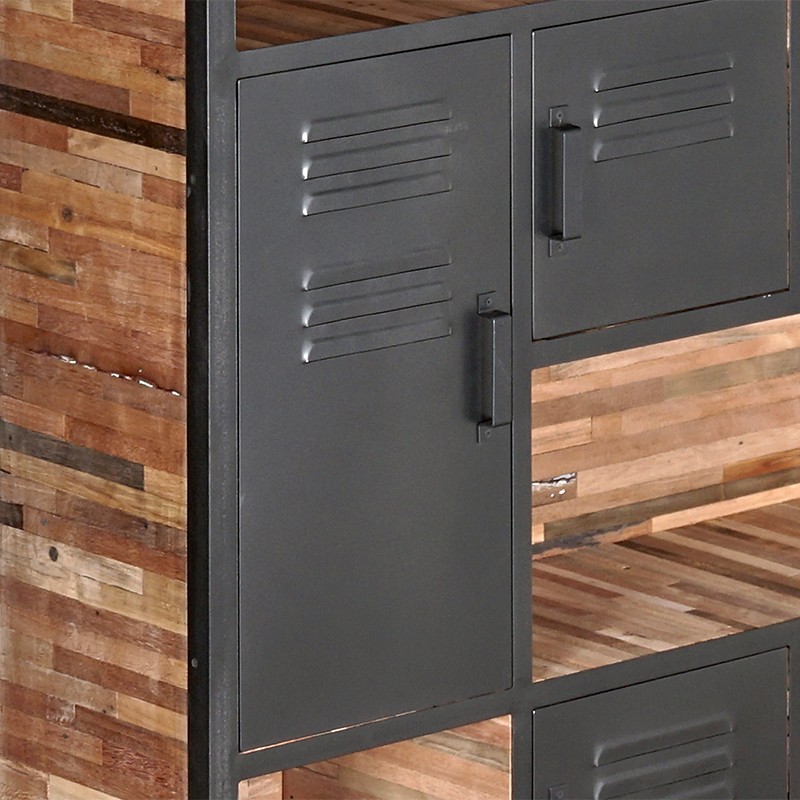 Bibliothèque collection LOCKER 4 portes, 4 niches en bois de bateaux recyclé et métal.