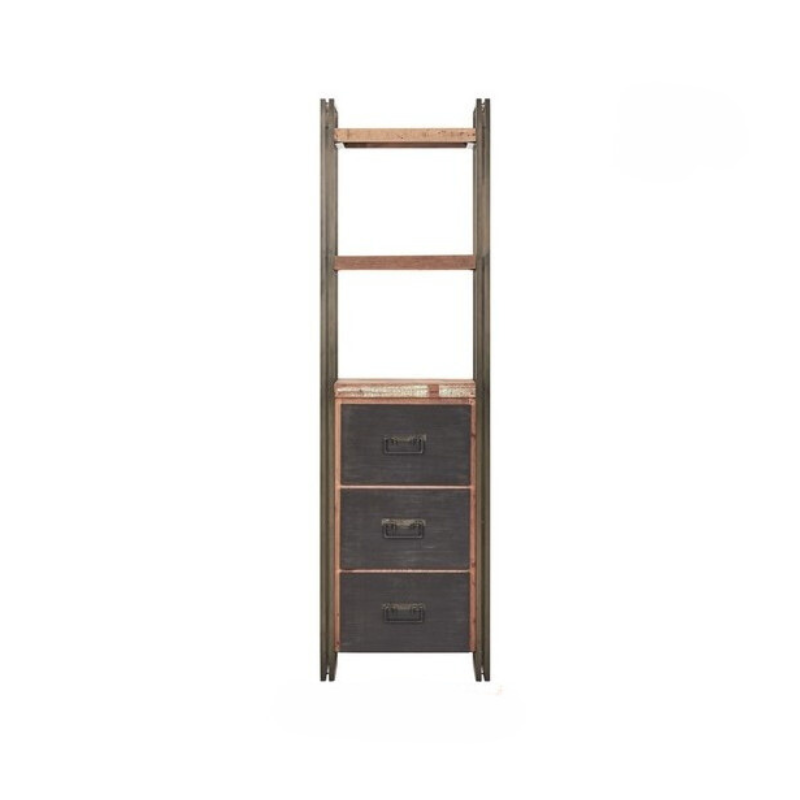 Colonne 3 tiroirs, 2 étagères collction SAMUDRA en bois de bateaux recyclé et structure métal thermolaqué.