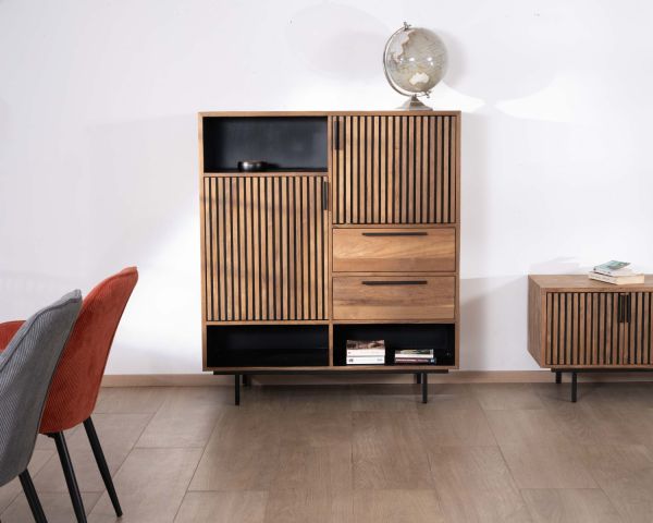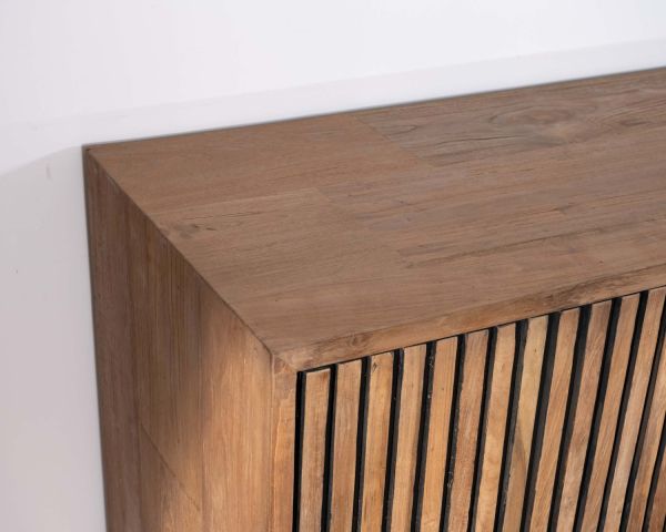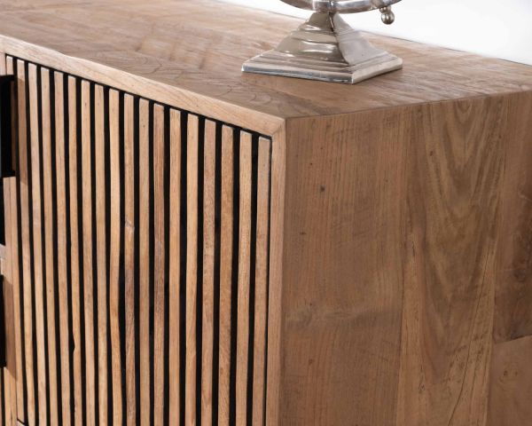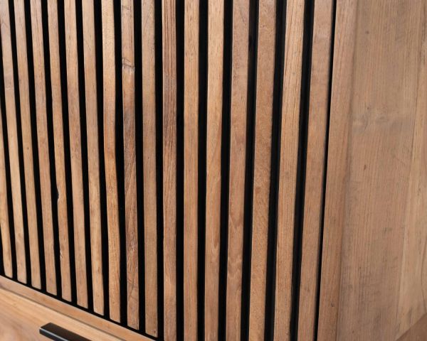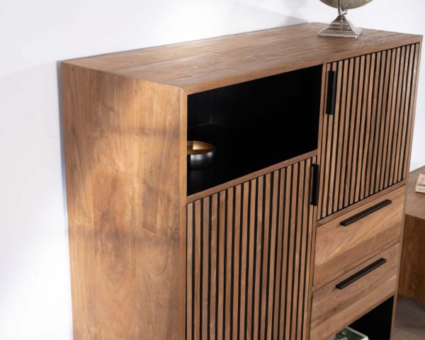 Meuble de rangement haut teck recyclé 2 portes 2 tiroirs 3 niches collection OPLAND.